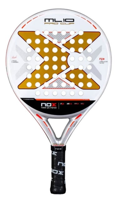 Impossible de parler de raquette de transition sans citer la légende absolue, validée et jouée par le charismatique Miguel Lamperti. Bien qu'elle soit de forme ronde, c'est l'arme fatale des intermédiaires avancés. Avec son cadre en carbone et ses faces en fibre de verre métallisée, elle offre une sortie de balle monumentale. Dès le fond de court, vous n'avez pas besoin de forcer avec le bras pour renvoyer des lobs profonds millimétrés.